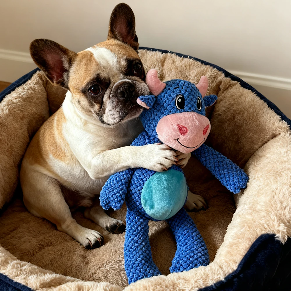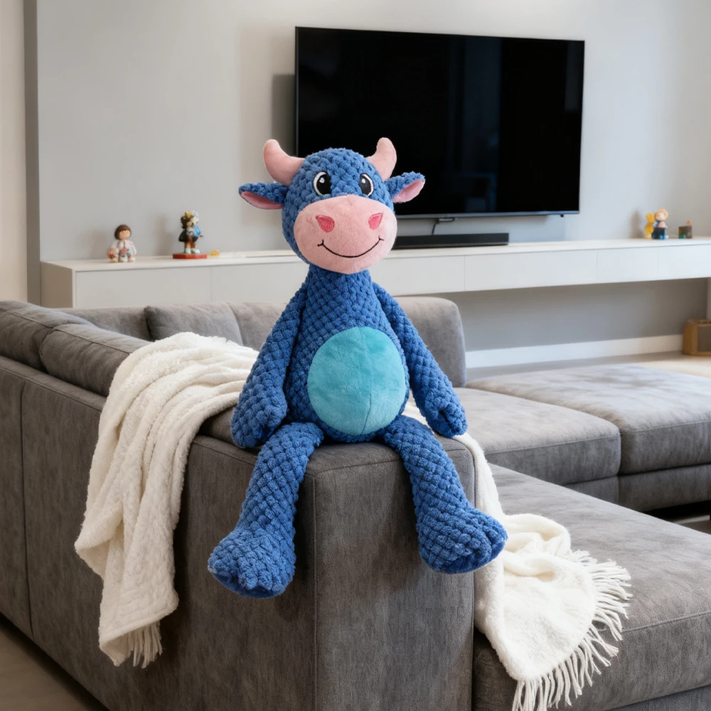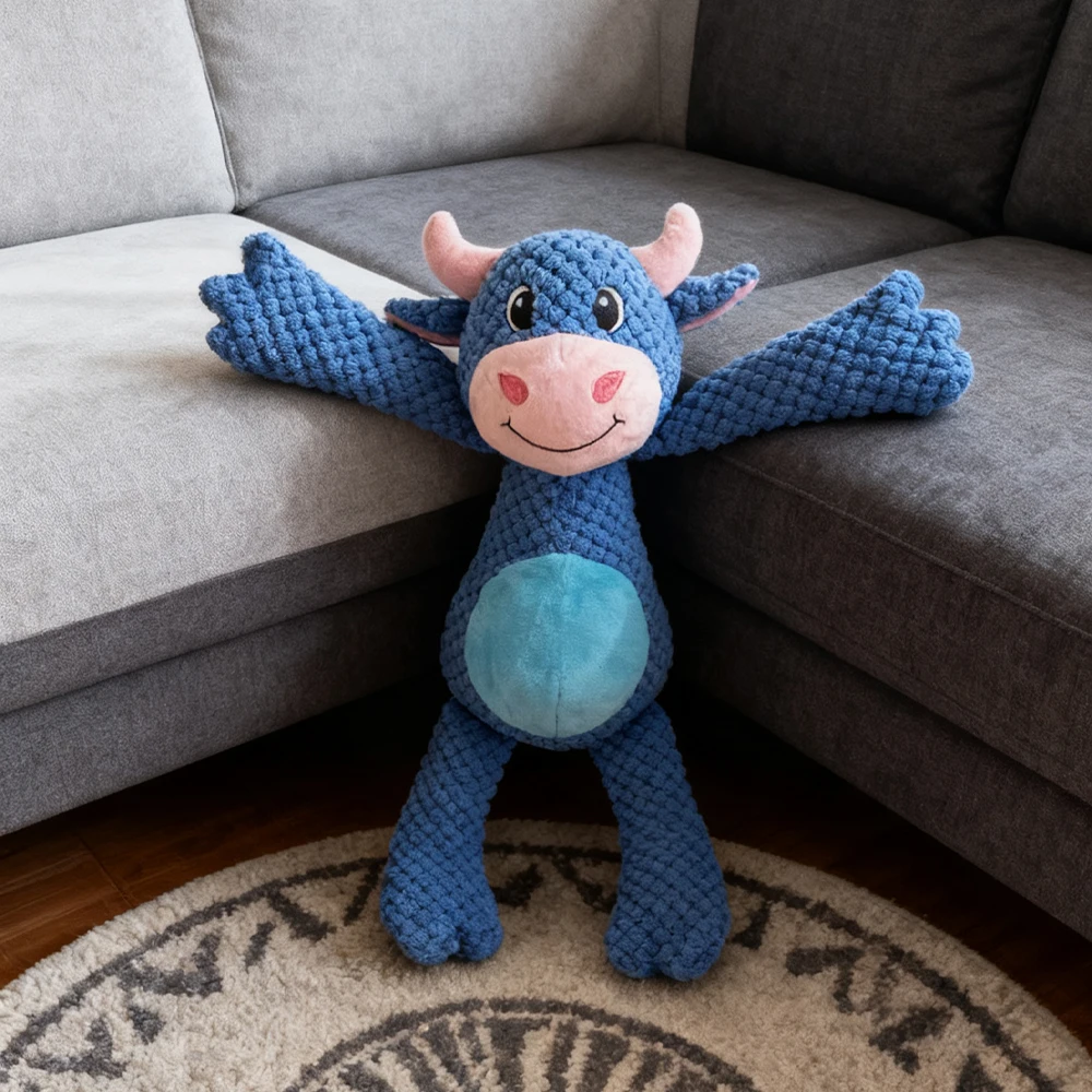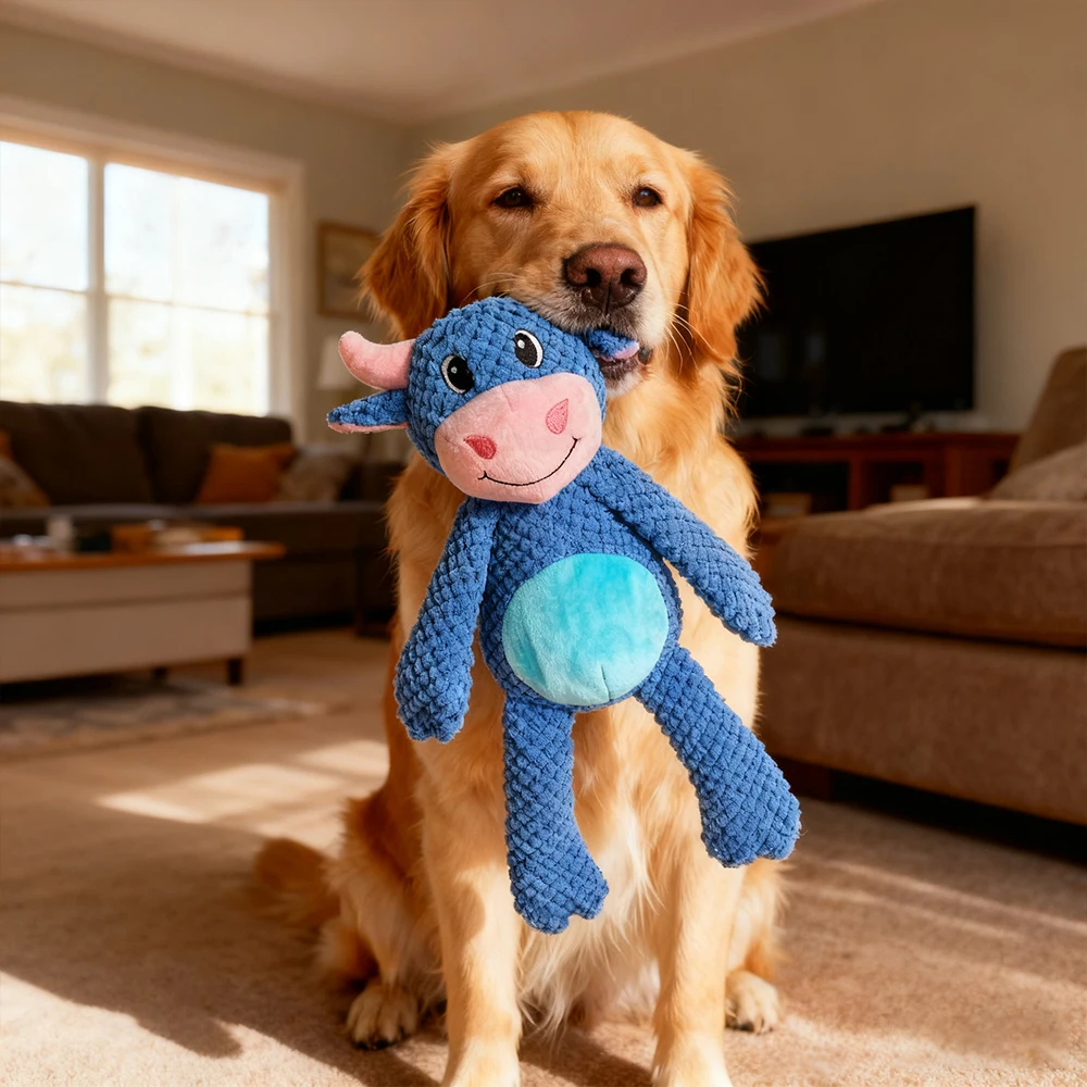 Best Toy Pet Chew-Resistant Plush Interactive Toy with Sound, Cartoon Cow Shape, Suitable for Large, Medium, and Small Pets Like Cats and Dogs, Double-Layer Fabric, Built-In Airbag